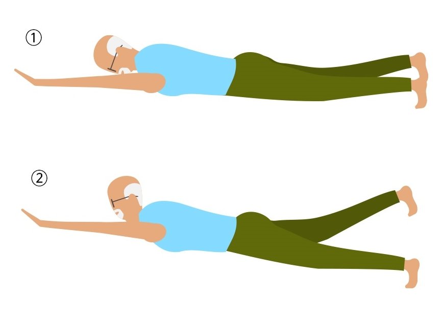 STEP 1 นอนคว่ำราบไปกับพื้นพร้อมเหยียดแขนขวาไปข้างหน้า ส่วนแขนซ้ายวางแนบลำตัว