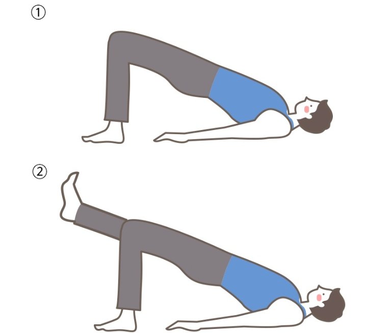 STEP 3 ยกขาข้างขวาขึ้นพร้อมเกร็งสะโพกและขมิบก้นไว้ ยกค้างไว้ประมาณ 10-15 วินาที และสลับยกขาข้างซ้าย ยกค้าง 10-15 วินาทีเช่นกัน