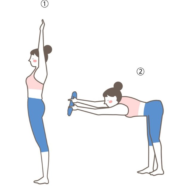 STEP 2 ก้าวขาขวาไปข้างหน้าเล็กน้อย แล้วโน้มตัวไปข้างหน้า พร้อมยืดแขนที่ถือผ้าเช็ดตัวออกไปให้สุด ขณะเดียวกันยกก้นและสะโพกให้สูงเข้าไป จากนั้นสลับเป็นก้าวขาซ้ายไปข้างหน้าแทนแล้วทำแบบเดิม ค้างไว้ประมาณ 10-15 วินาที