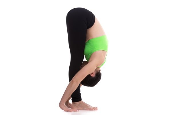 ยืนตรงเท้าชิดกัน ส้นเท้าและฝ่าเท้าแยกกันเท่าช่วงไหล่ จากนั้นหายใจออก ก้มตัวลงจนฝ่ามือจดพื้นตรงหน้านิ้วเท้า หรืออาจจะวางฝ่ามือไว้ตรงหลังเท้าก็ได้ ค้างไว้สักพัก หายใจเข้าพร้อมกับก้มหน้าให้มากที่สุด เมื่อหายใจออกให้คลายท่าเล็กน้อย อาจจะค้างท่านี้ไว้ 30 วินาทีถึง 1 นาที แล้วค่อยคลายท่า โดยยกมือขึ้นจากพื้น วางมือไว้บริเวณสะโพกก่อน แล้วย่อตัวลงนั่ง หายใจเข้าพร้อมกับลุกขึ้นยืน