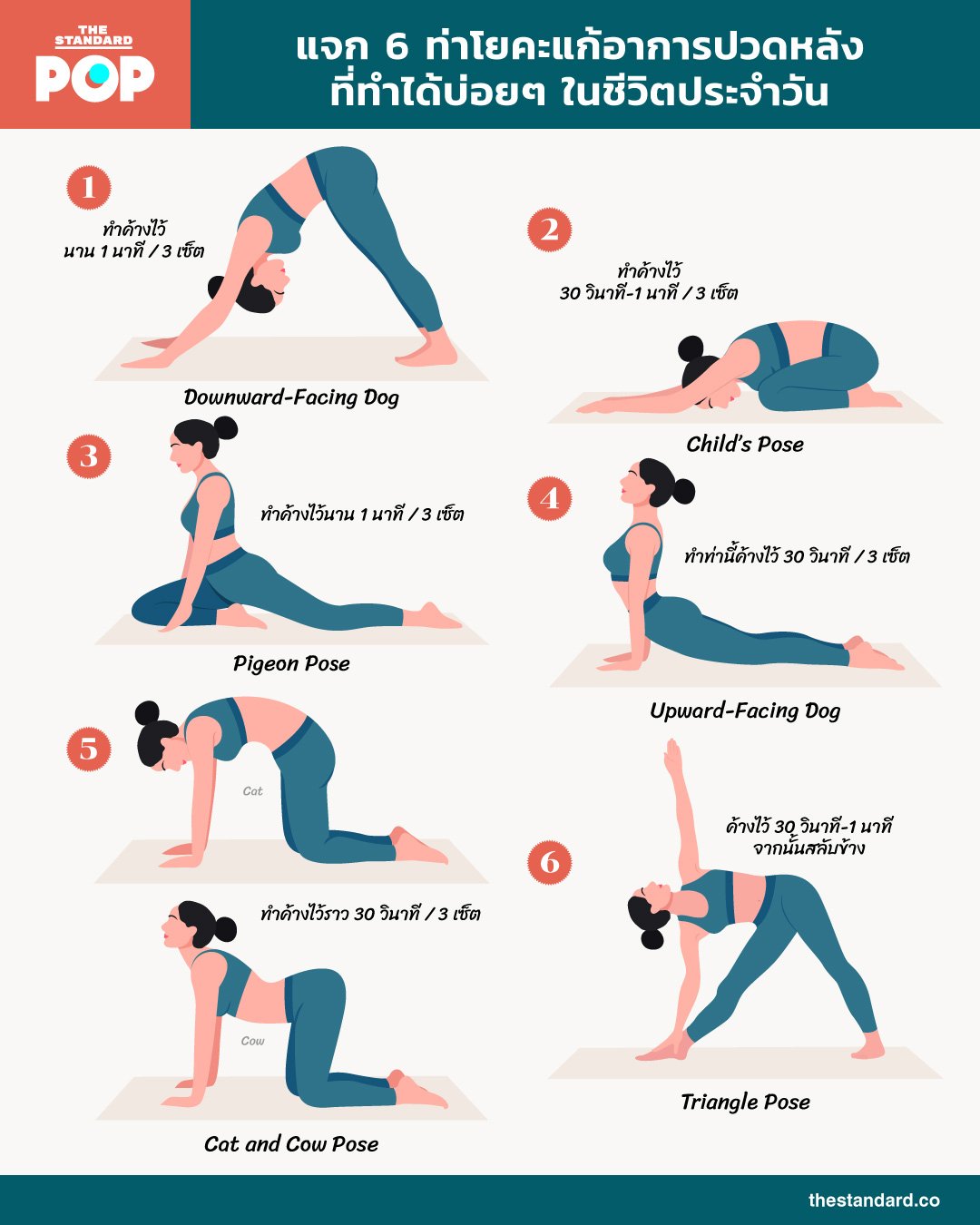 THE STANDARD POP จึงคัดสรรท่าโยคะแก้อาการปวดหลังที่ทำได้ง่ายมาฝากชาวออฟฟิศซินโดรมทุกคน หากสามารถทำเป็นประจำ นอกจากจะช่วยบรรเทาอาการปวดให้ดีขึ้นแล้ว ยังถือเป็นอีกหนึ่งวิธีในการออกกำลังกายและได้ฝึกสมาธิไปในตัว