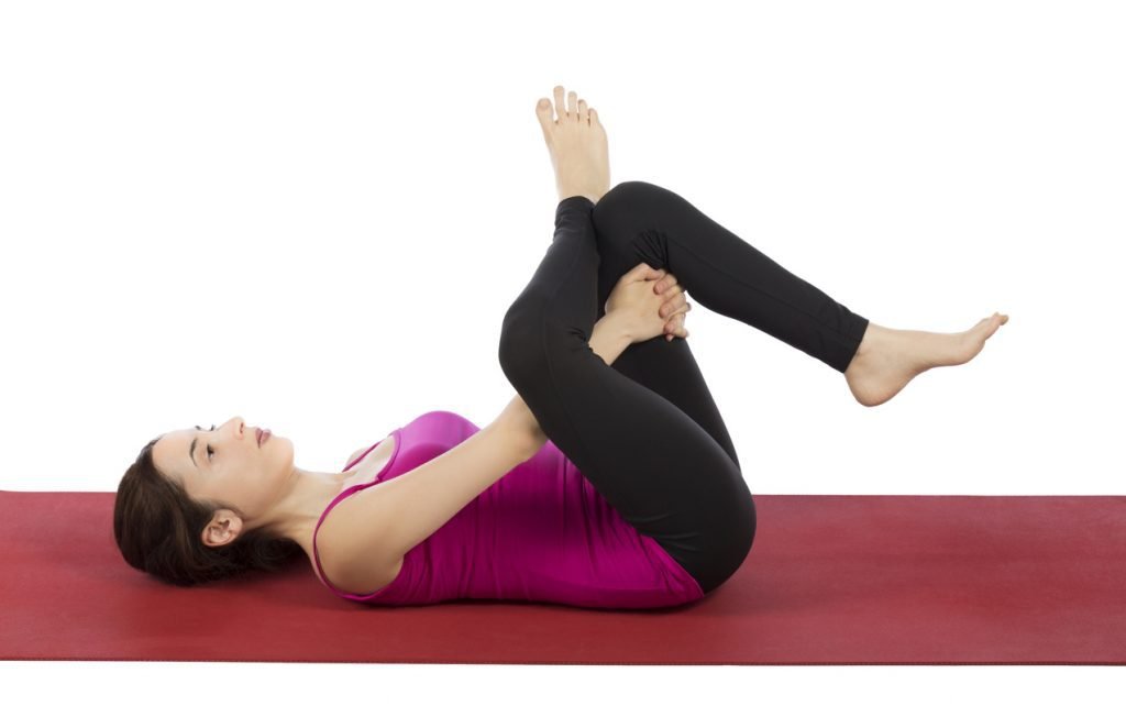 ท่านี้จะช่วยบรรเทาอาการปวดหลังและกล้ามเนื้อหลังส่วนล่าง เริ่มจากนอนหงายแล้วเข่างอข้างใดข้างหนึ่ง เท้าอีกข้างวางราบกับพื้น จากนั้นดึงเข่าให้ชิดหน้าอกของคุณมากที่สุดในขณะที่เท้าอีกข้างหนึ่งให้กดปลายเท้าลง ทำท่านี้ค้างไว้ 2-3 วินาที ทำซ้ำอีก 3-4 ครั้ง